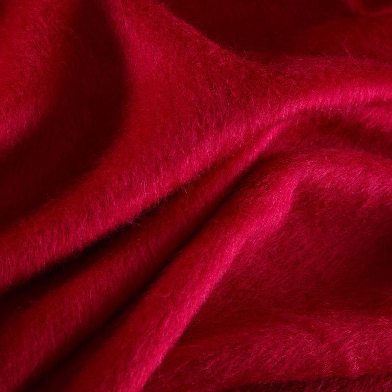Шикарная пальтовая альпака с добавлением полиэстера в ярком красно-малином оттенке. Толщина полотна 2-3 мм. Ткань имеет направленный ворс - длина около 1 см. Не тянется и не просвечивает, не колется. Неплохо держит форму. Прекрасно подойдет для пошива всех видов пальто: двубортного, пальто-халата, пальто-рубашки, мягкого бомбера.
