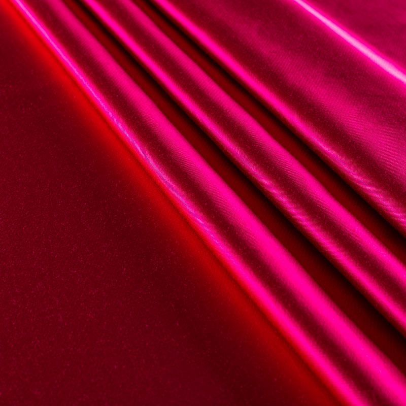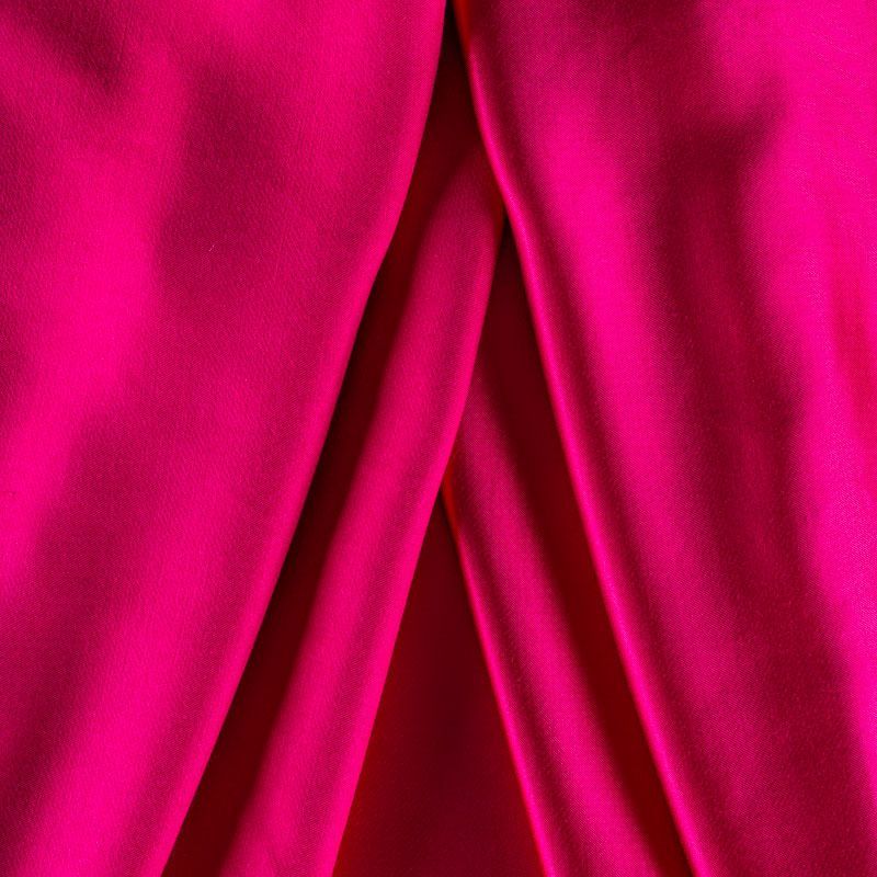Итальянский костюмно-плательный вискозный атлас яркого оттенка фуксии. Ткань плотная, но пластичная, хорошо держит форму, собирается в красивые складки и драпировки. Блеск умеренный, смотрится дорого, благородно. Подойдет для пошива платьев, блузок, юбок, легких комбинезонов, костюмов, также в качестве подклада на пальто или шубу.