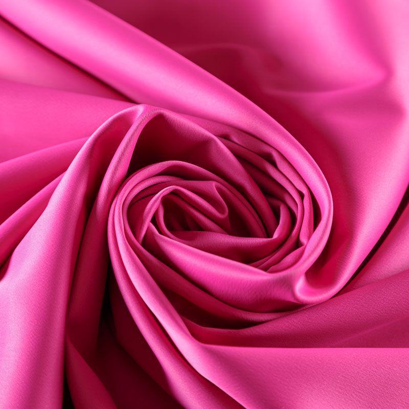 Итальянский костюмно-плательный атлас ватуссо розового оттенка. Ткань плотная, но пластичная, хорошо держит форму и отлично тянется, собирается в красивые складки и драпировки. Почти не мнется, очень удобный и практичный. Блеск умеренный, смотрится дорого, благородно. Подойдет для пошива прямых силуэтов-футляров, приталенных платьев с пышной юбкой и крупными драпировками, изделий с заложенными складками, нарядных изделий, вечерних костюмов, летнего пальто, юбки, для изготовления корсетов.