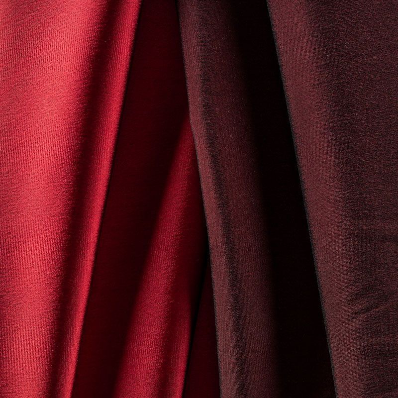 Итальянский костюмно-плательный атлас ватуссо бордового оттенка. Ткань плотная, но пластичная, хорошо держит форму и отлично тянется, собирается в красивые складки и драпировки. Почти не мнется, очень удобный и практичный. Блеск умеренный, смотрится дорого, благородно. Подойдет для пошива прямых силуэтов-футляров, приталенных платьев с пышной юбкой и крупными драпировками, изделий с заложенными складками, нарядных изделий, вечерних костюмов, летнего пальто, юбки, для изготовления корсетов.