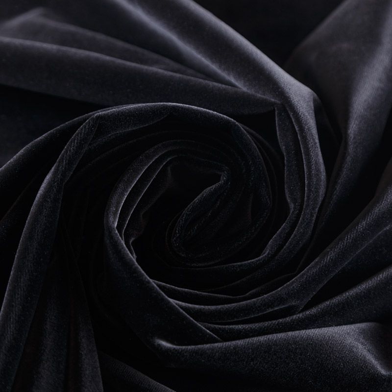 Хлопковый итальянский бархат глубокого серого оттенка. Ткань плотная, мягкая с коротким ворсом. Не грубая, хорошо драпируется. Имеет благородный матовый оттенок. Подойдет для пошива нарядного костюма, жакета, юбки, жилета, шорт, комбинезонов, брюк, платья-футляр, легкого пальто или бомбера.