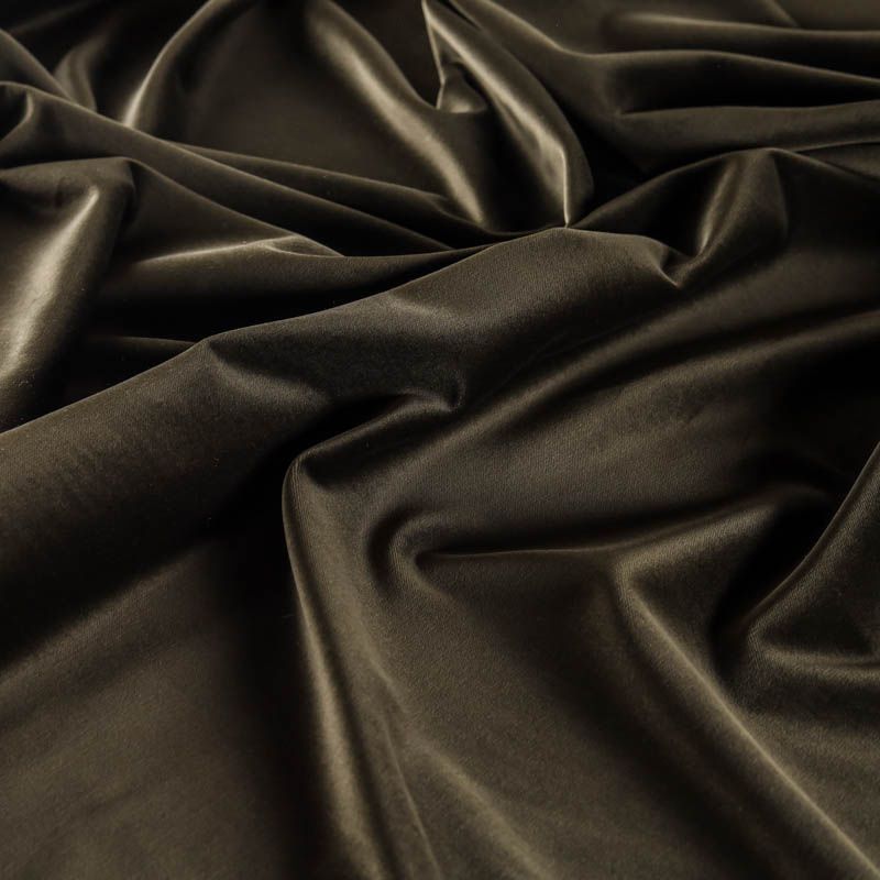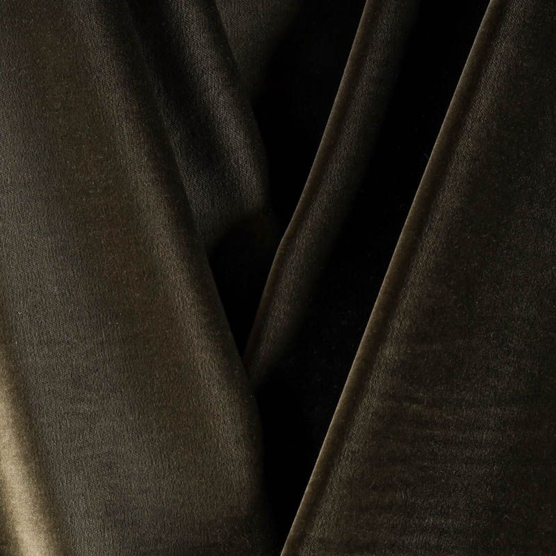 Плотный итальянский бархат из хлопка благородного оттенка хаки с добавлением небольшого количества эластана. Ткань очень приятная на ощупь, поверхность матовая, пластична, но держит форму, а также прочна - идеальна для костюма, жакета, легкого пальто, юбки, жилета, комбинезона, брюк, платья-футляра.