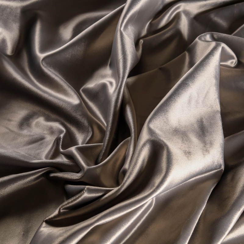 Плотный хлопковый итальянский бархат жемчужного серого оттенка со сдержанным глянцем на поверхности. Ткань очень приятная на ощупь, гладкая шлифованная поверхность, хорошо держит форму. Идеальный вариант для нарядного костюма, жакета, легкого пальто, юбки, жилета, брюк, платья-футляра.