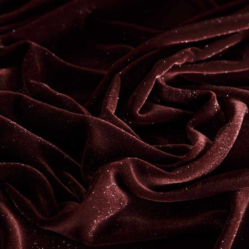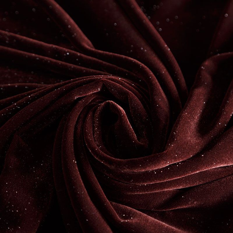 Нарядная ткань с ультракоротким ворсом декорирована искрящимися точками по всей поверхности, очень приятна на ощупь, не мнется, мягкая, нежная, хорошо тянется и драпируется. Цвет играет отблесками и полутонами. Бархат идеально подходит для пошива вечерних платьев, юбок, костюмов, а также стильных аксессуаров.