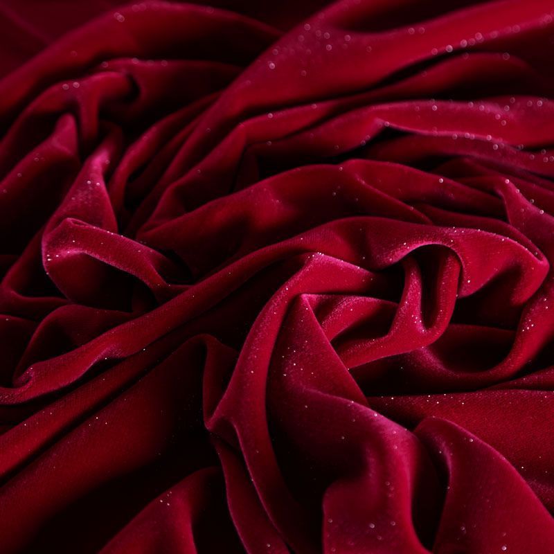 Нарядная ткань с ультракоротким ворсом декорирована искрящимися точками по всей поверхности, очень приятна на ощупь, не мнется, мягкая, нежная, хорошо тянется и драпируется. Цвет играет отблесками и полутонами. Бархат идеально подходит для пошива вечерних платьев, юбок, костюмов, а также стильных аксессуаров.