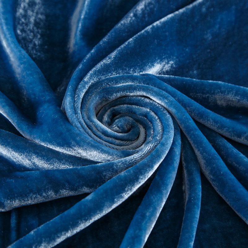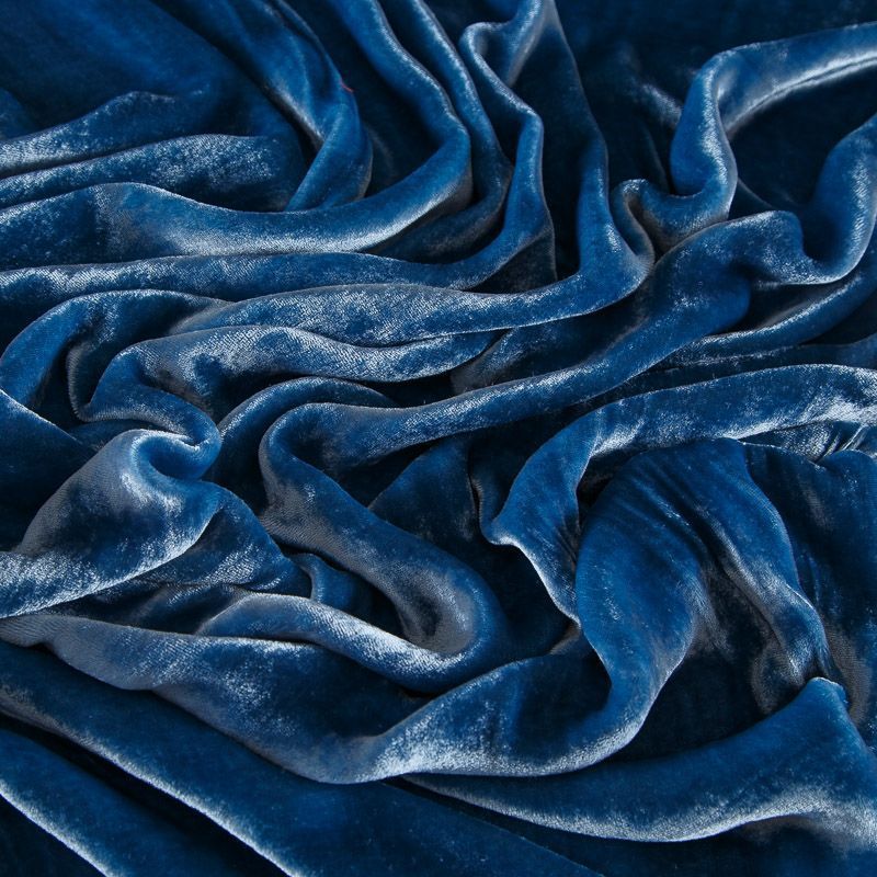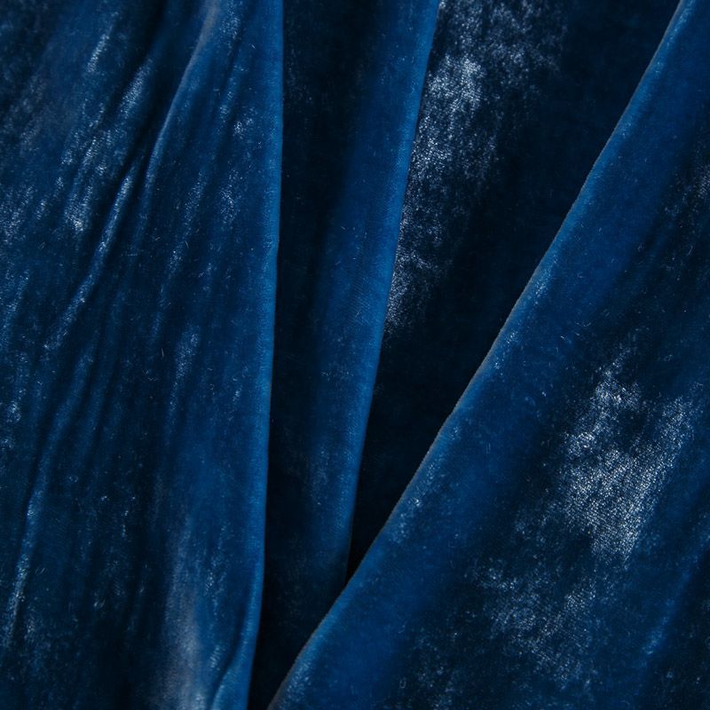 Итальянский бархат из шелка и вискозы. Ткань средней плотности, мягкая и гладкая на ощупь, с легким блеском, хорошо драпируется, струится. Идеальна для пошива платья, юбки, костюма в пижамном стиле, кимоно, туники.