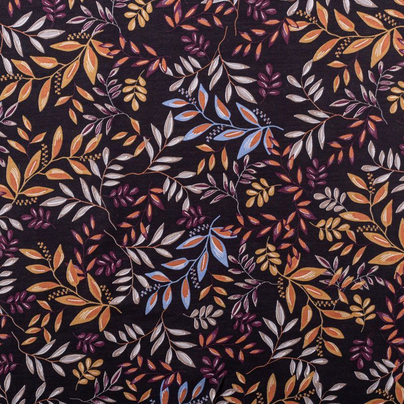 Итальянский хлопковый батист с растительным принтом в бежево-коричневых оттенках на черном фоне. Ткань очень легкая, прозрачная, приятная на ощупь, нежная, пластичная, хорошо и мягко драпируется, летящая. Батист подойдёт для модных блуз с объёмными рукавами, летних платьев и сарафанов с длинной летящей юбкой, прозрачных рубашек, декорированных объёмными бантами, туник и топов.