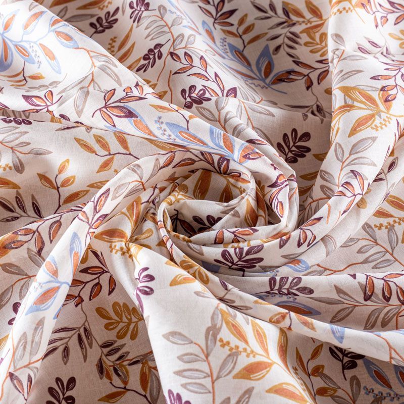 Итальянский хлопковый батист с растительным принтом в бежево-коричневых оттенках на белом фоне. Ткань очень легкая, прозрачная, приятная на ощупь, нежная, пластичная, хорошо и мягко драпируется, летящая. Батист подойдёт для модных блуз с объёмными рукавами, летних платьев и сарафанов с длинной летящей юбкой, прозрачных рубашек, декорированных объёмными бантами, туник и топов.