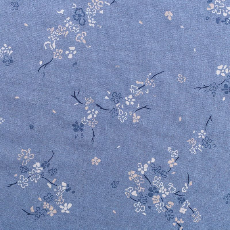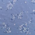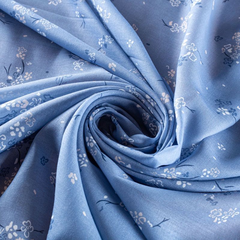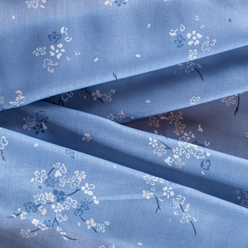 Батист с мелким цветочным принтом в бело-синих оттенках на голубом фоне. Ткань очень легкая, прозрачная, приятная на ощупь, нежная, пластичная, хорошо и мягко драпируется, летящая. Батист подойдёт для модных блуз с объёмными рукавами, летних платьев и сарафанов с длинной летящей юбкой, прозрачных рубашек, декорированных объёмными бантами, туник и топов.