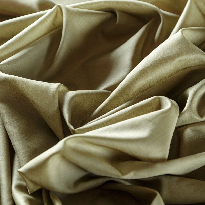 Итальянский хлопковый батист в оливковом оттенке, тонкий, легкий, полупрозрачный, приятный на ощупь, нежный, хорошо и мягко драпируется, летящий. Батист подойдёт для модных блуз с объёмными рукавами, летних платьев и сарафанов с длинной летящей юбкой, прозрачных рубашек, декорированных объёмными бантами, детской одежды.