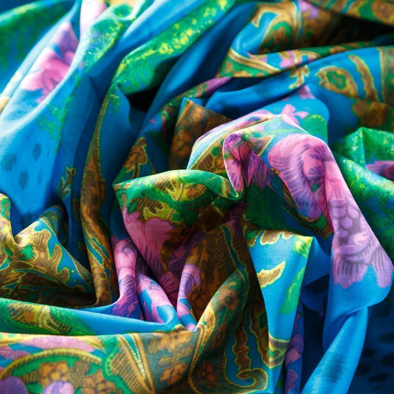 Итальянский хлопковый батист с ярким принтом в желтых, сиреневых и зеленых оттенках. Ткань очень легкая, прозрачная, приятная на ощупь, нежная, пластичная, хорошо и мягко драпируется, летящая. Батист подойдёт для модных блуз с объёмными рукавами, летних платьев и сарафанов с длинной летящей юбкой, прозрачных рубашек, декорированных объёмными бантами, туник и топов.