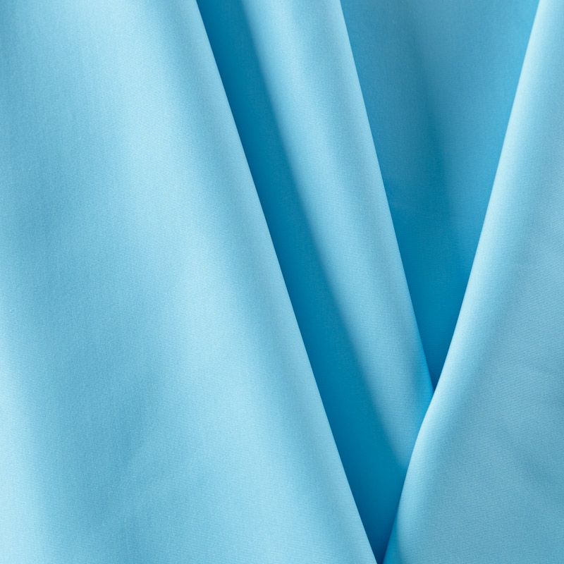 Итальянский плотный матовый бифлекс светло-голубого цвета. Ткань отлично тянется во всех направлениях, не прозрачный, одежда из него не сковывает движения. Хорошо впитывает влагу и быстро высыхает, не вызывет аллергии и раздражения. Подойдет для пошива купальников, пляжных и коктейльных платьев, топов, боди, леггинсов, велосипедок и лосин, костюмов фигуристов, танцоров, гимнастов.