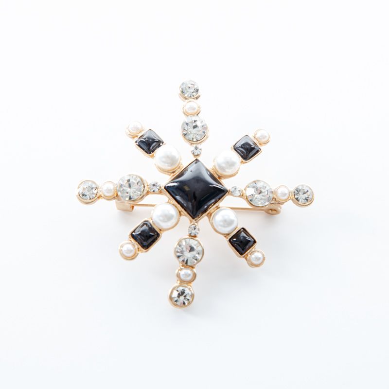 Брошь декоративная 55х30 мм стразы ACS0477 золотой/черный