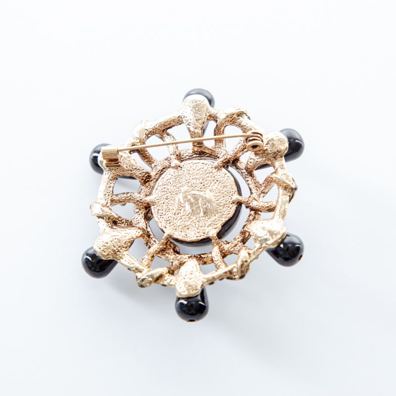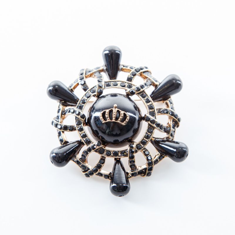 Брошь декоративная d60 мм стразы ACS0479 золотой/черный в Уфе