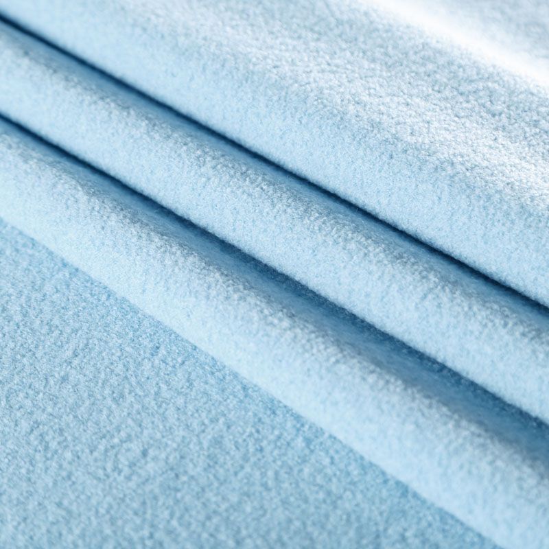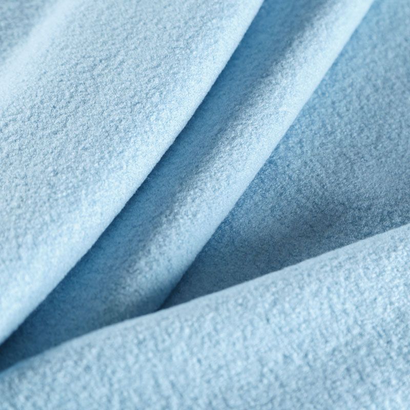 Итальянская мягкая, уютная и теплая шерстяная ткань с буклированной поверхностью голубого оттенка. Хорошо держит форму, пластичная, плотная. Не мнется, отлично драпируется, устойчива к деформации. Отлично подойдет на пальто, кардиган, пончо, бомбер, теплый костюм и другие виды верхней одежды.