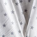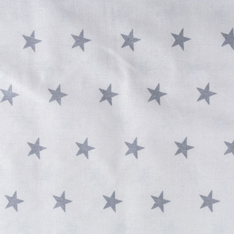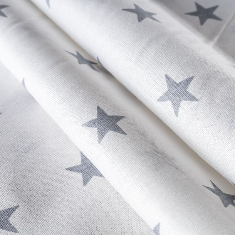 Плотная натуральная ткань с особым принципом переплетения нитей: крест-накрест. Имеет гладкую матовую поверхность чуть шероховатую на ощупь, не тянется, немного просвечивает. Прочная и стойкая к износу, надолго сохраняет яркость красок, не растягивается при стирке, практически не мнется. Принт в виде цветных звездочек на белом фоне прекрасно подойдет для пошива постельного белья, изготовления пеленок, бортиков для кроватки, домашней одежды и других предметов интерьера.