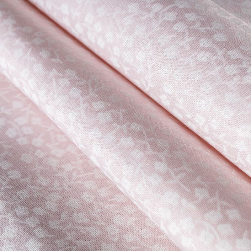 Плотная натуральная ткань с особым принципом переплетения нитей: крест-накрест. Имеет гладкую матовую поверхность, немного шероховатая на ощупь, не тянется, немного просвечивает. Прочная и стойкая к износу, надолго сохраняет яркость красок, практически не мнется. Милый принт в виде мелких белых цветочков на нежнейшем розовом фоне прекрасно подойдет для пошива постельного белья, изготовления пеленок, бортиков для кроватки, домашней одежды и других предметов интерьера.