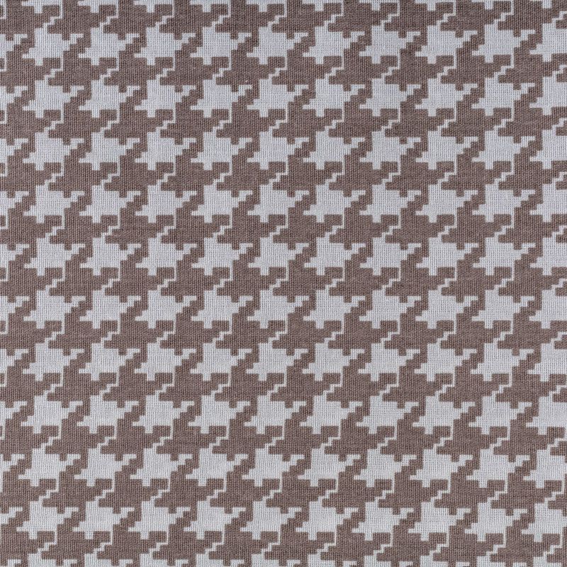 Плотная натуральная ткань с особым принципом переплетения нитей: крест-накрест. Имеет гладкую матовую поверхность чуть шероховатую на ощупь, не тянется, немного просвечивает. Прочная и стойкая к износу, надолго сохраняет яркость красок, не растягивается при стирке, практически не мнется. Рисунок, имитирующий "гусиную лапку" цвета какао на белом фоне, прекрасно подойдет для пошива постельного белья, изготовления пеленок, бортиков для кроватки, домашней одежды и других предметов интерьера.