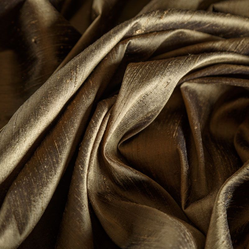 Фактурный натуральный дикий шелк из волокна высшего сорта является самым натуральным из всех видов шелка. Ткань приятна на ощупь, комфортна при носке, гигиенична и долговечна. Дикий шелк прекрасно держит форму, драпируется и подходит как для пошива блузы, топа, жакетов, платьев, юбок, плащей и тренчей, так и для дизайна интерьеров пошива штор, покрывал, подушек и обивки мебели.