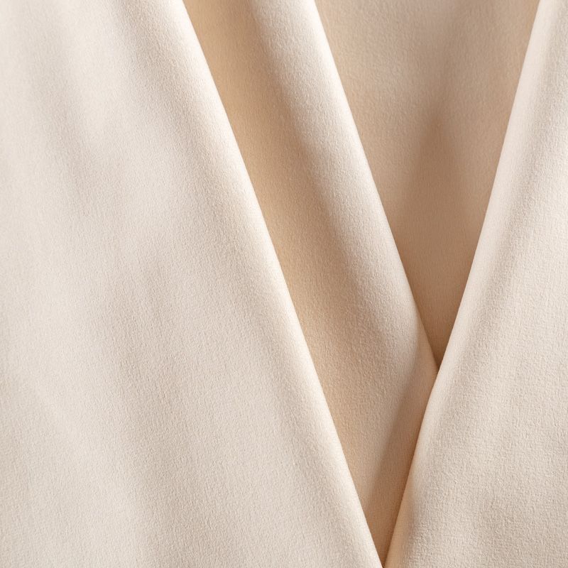 Трикотажное полотно высокой плотности. Обе стороны ткани ровные, гладкие. Материал эластичный, имеет растяжимость по всем сторонам, держит форму, уютный, приятный к телу и удобный в носке. Применяется в пошиве платьев, юбок, костюмов, жакетов.