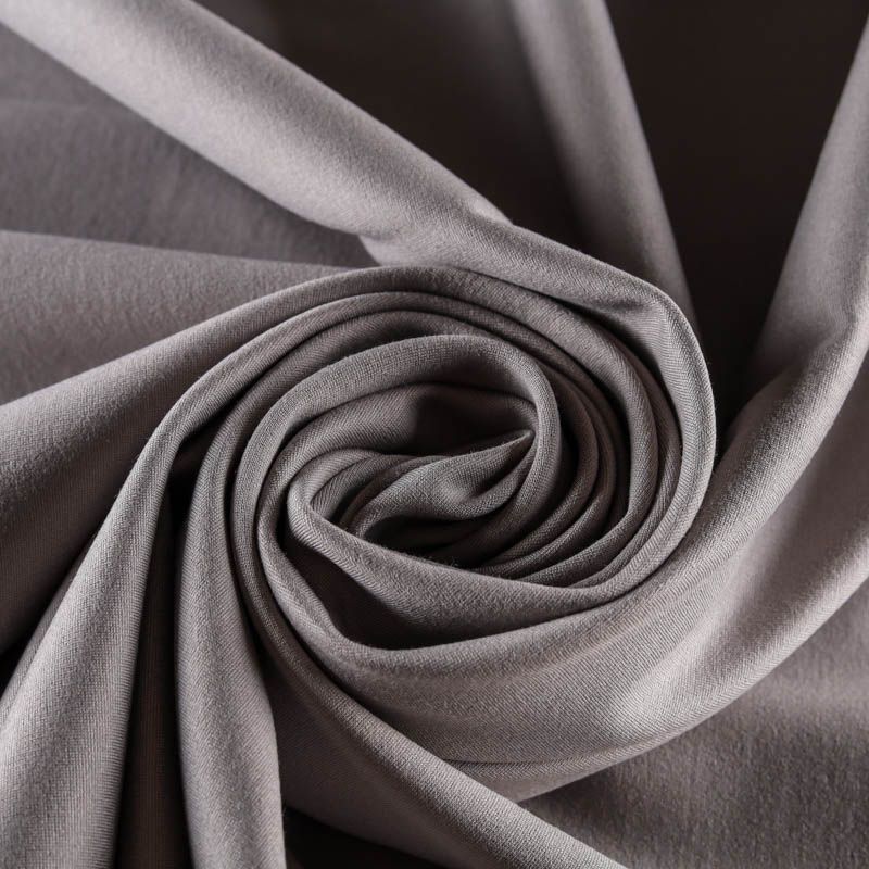 Плотное трикотажное полотно. Обе стороны ткани ровные, гладкие. Материал эластичный, имеет растяжимость по всем сторонам, хорошо держит форму, уютный, приятный к телу и удобный в носке. Применяется в пошиве платьев, юбок, костюмов, жакетов.