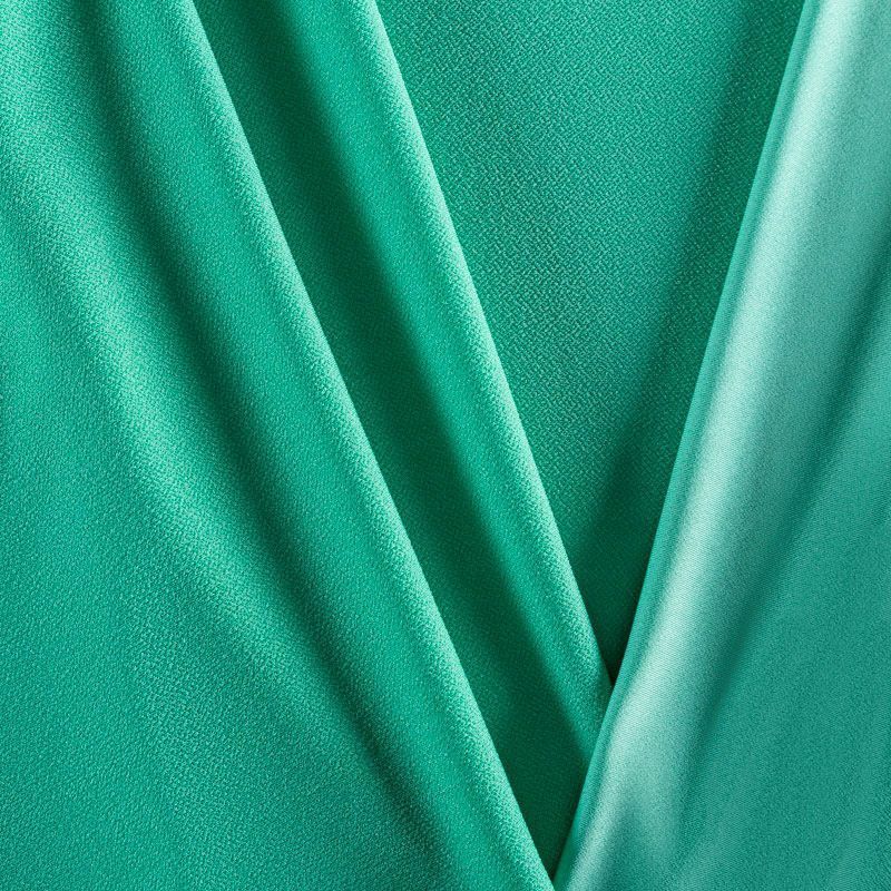 Плотное трикотажное полотно с фактурной креповой поверхностью. Материал эластичный, имеет растяжимость по всем сторонам, хорошо держит форму, уютный, приятный к телу и удобный в носке. Применяется в пошиве платьев, юбок, костюмов, жакетов.