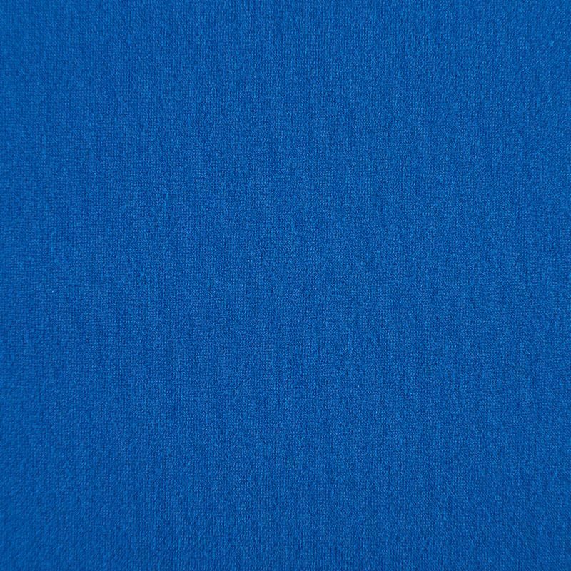 Эластичный, плотный хлопковый трикотаж василькового оттенка. Поверхность ткани гладкая и матовая, с изнанки - с шелковистым мягким ворсом.  Материал упругий, имеет растяжимость по всем сторонам, не просвечивается, хорошо держит форму, уютный, приятный к телу и удобный в носке. Применяется в пошиве костюмов, жакетов, кардиганов, платьев и юбок.