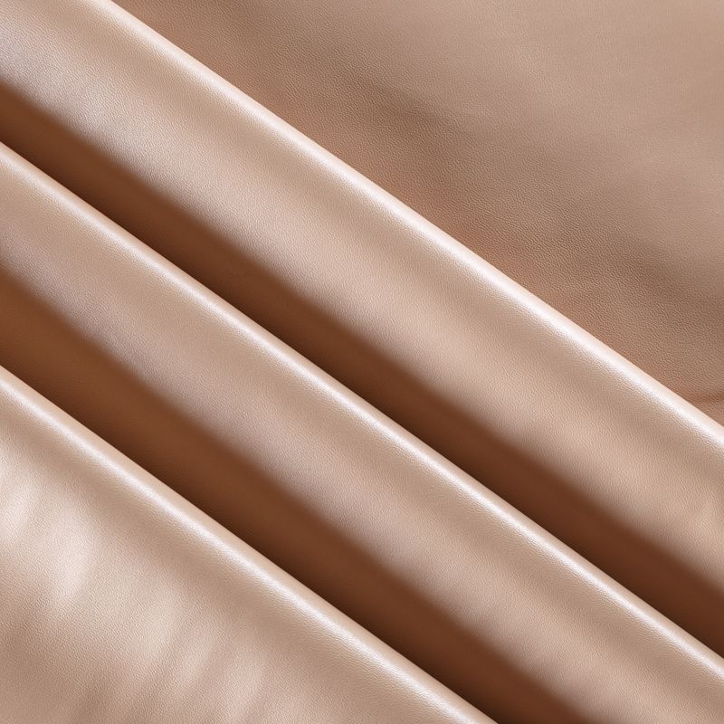 Искусственный материал, имитирующий натуральную кожу, на светлой трикотажной основе. Экокожа тоньше натуральной, не мнется, пластична, хорошо тянется за счет эластана в составе, облегает фигуру. Подойдет для пошива куртки, костюма, платья, юбки, брюк, шорт, комбинезона, сумки, рюкзака.