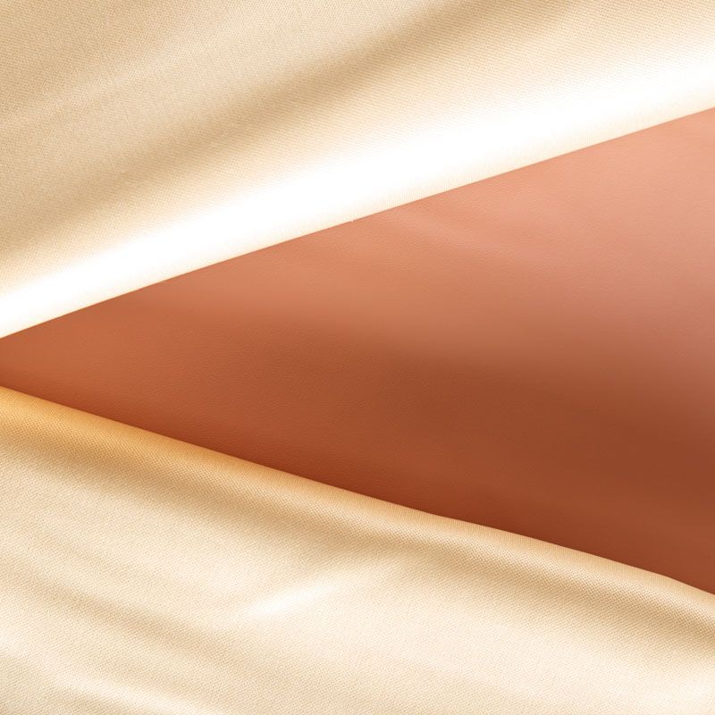 Искусственный материал, имитирующий натуральную кожу, на светлой трикотажной основе. Экокожа тоньше натуральной, не мнется, пластична, хорошо тянется за счет эластана в составе, облегает фигуру. Подойдет для пошива куртки, костюма, платья, юбки, брюк, шорт, комбинезона, сумки, рюкзака.