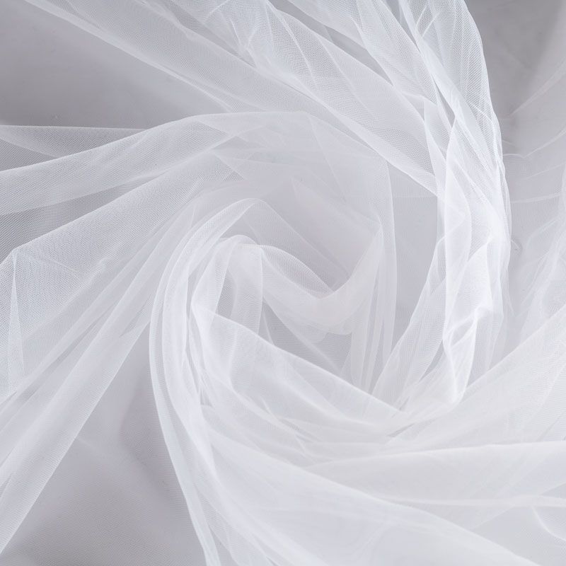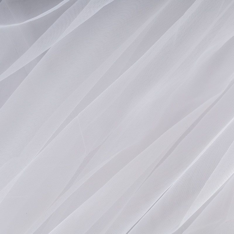 Итальянский еврофатин - мягкий и матовый. Неплохо драпируется в слегка держащие форму складки, имеет мелкое сетчатое плетение, прияный на ощупь, растягивается в ширину. Подойдет для пошива платья, юбки-пачки, фаты и других коктейльных и вечерних нарядов.