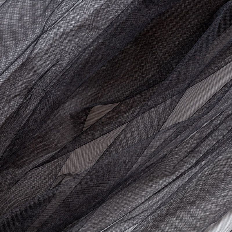 Итальянский еврофатин - мягкий и матовый. Неплохо драпируется в слегка держащие форму складки, имеет мелкое сетчатое плетение, прияный на ощупь, растягивается в ширину. Подойдет для пошива платья, юбки-пачки, фаты и других коктейльных и вечерних нарядов.