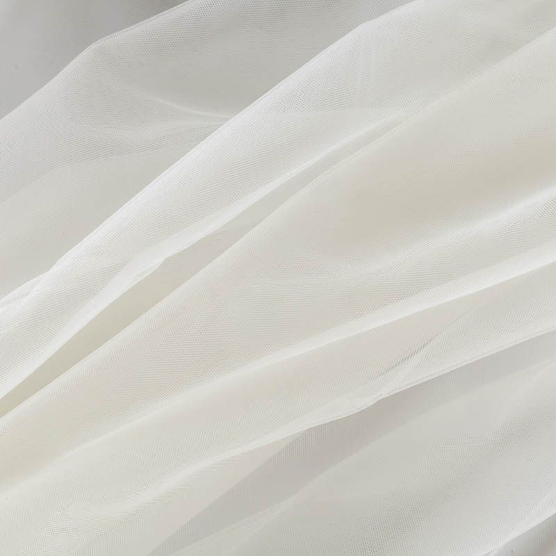 Итальянский еврофатин - мягкий и матовый. Неплохо драпируется в слегка держащие форму складки, имеет мелкое сетчатое плетение, прияный на ощупь, растягивается в ширину. Подойдет для пошива платья, юбки-пачки, фаты и других коктейльных и вечерних нарядов.