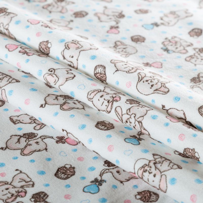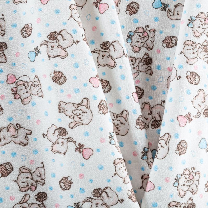 Износостойкий мягкий материал, не раздражает кожу, не садится, отлично впитывает влагу и хорошо удерживает тепло. На лицевой стороне мягкий ворс. Милый детский принт в виде рисованных тропических животных на белом фоне прекрасно подойдет для пошива постельного белья, изготовления пеленок, бортиков для кроватки, домашней одежды, пижамы и других предметов интерьера.