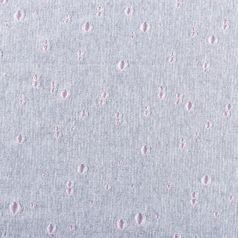 Итальянский плотный, но мягкий эластичный хлопковый трикотаж в стиле гранж. Лицевая сторона гладкая, без блеска, мелкой вязки светло-серого цвета. Изнанка – петля нежно-розового оттенка. Прекрасный вариант для пошива платьев и костюмов, легких толстовок, свитшотов, спортивной, детской и  домашней одежды.