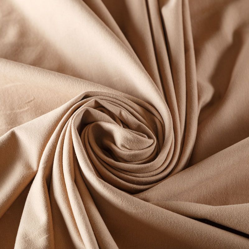 Плотный, но мягкий эластичный трикотаж. Лицевая сторона гладкая, без блеска, мелкой вязки. Изнанка – с небольшим однородным ворсом или петля. Прекрасный вариант для пошива платьев и костюмов, легких толстовок, свитшотов, спортивной, детской и  домашней одежды.