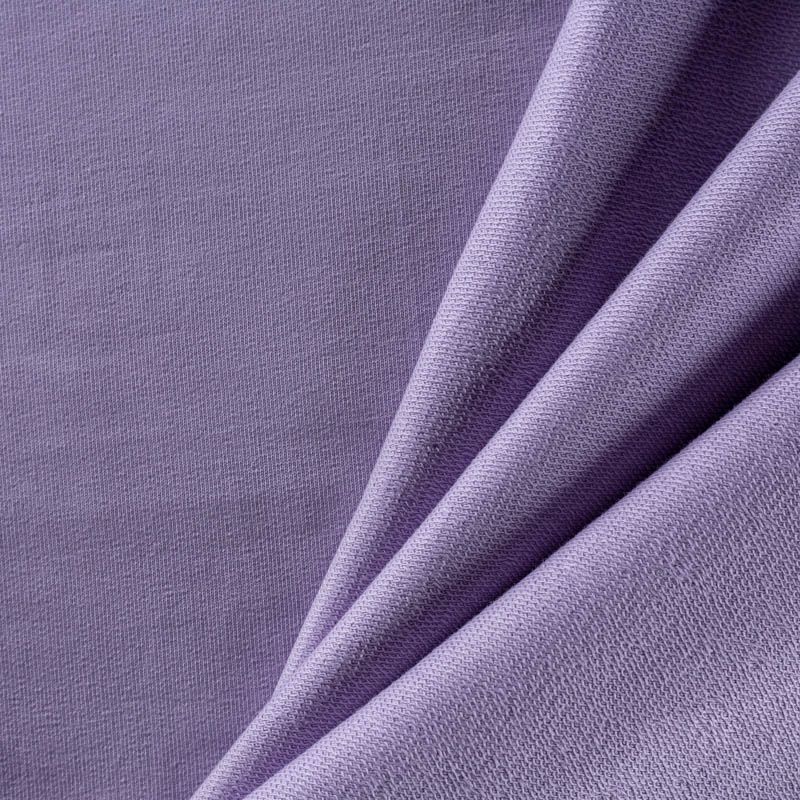 Плотный, но мягкий эластичный трикотаж. Лицевая сторона гладкая, без блеска, мелкой вязки. Изнанка – с небольшим однородным ворсом или петля. Прекрасный вариант для пошива платьев и костюмов, легких толстовок, свитшотов, спортивной, детской и  домашней одежды.