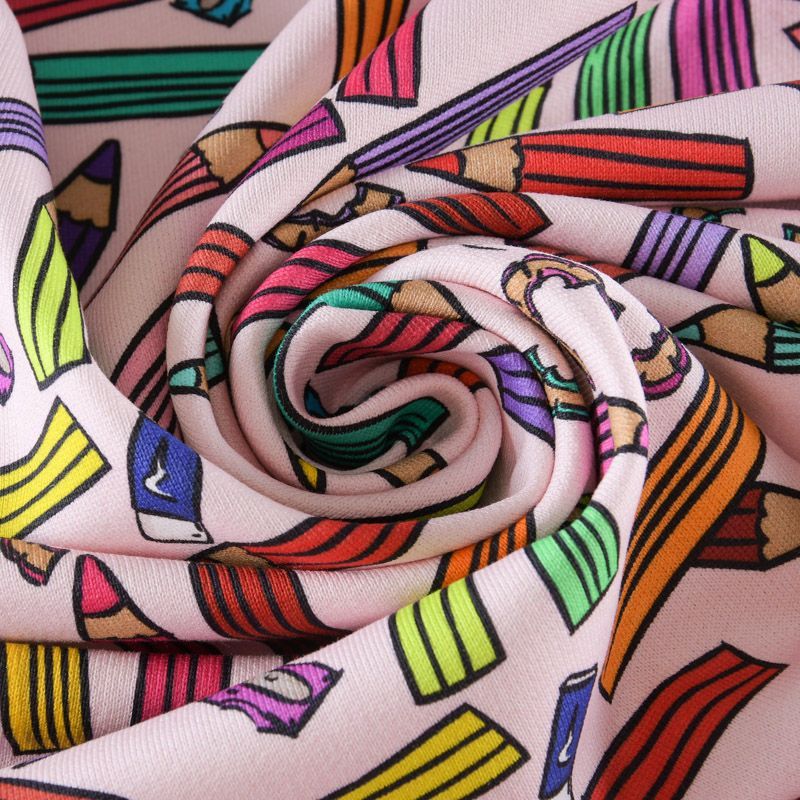 Итальянский брендовый футер с ярким игривым принтом на бледно-розовом фоне. Материал гладкий с лицевой стороны, с изнаночной стороны имеет нежную мелкую петельчатую текстуру. Ткань мягкая и комфортная, достаточно эластичная, пластичная. Хорошо садится по фигуре. Практически не мнется. После растяжения быстро возвращается к прежней форме. Подойдет для пошива толстовки, спортивного костюма, джоггеров, шорт, свитшота, кроп-топа, платья в спортивном стиле.