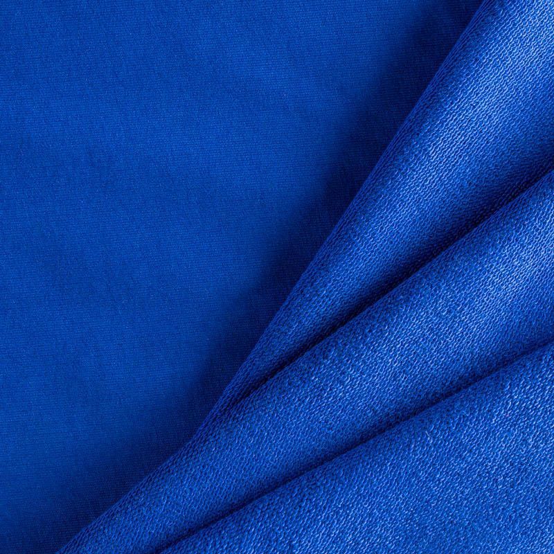 Материал гладкий с лицевой стороны, с изнаночной стороны имеет нежную мелкую петельчатую текстуру. Ткань мягкая и комфортная, достаточно эластичная, пластичная. Хорошо садится по фигуре. Практически не мнется. После растягивания быстро возвращается к прежней форме. Подойдет для пошива толстовки, спортивного костюма, свитшота, платья в спортивном стиле.