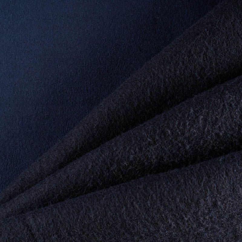 Плотный, но легкий и мягкий, с начесом по изнанке. Ткань хорошо тянется, прочная и износостойкая.  Лицевая сторона имеет выраженную трикотажную структуру. Подходит для пошива утепленных  спортивных костюмов, свитшотов, джемперов.