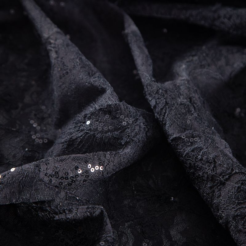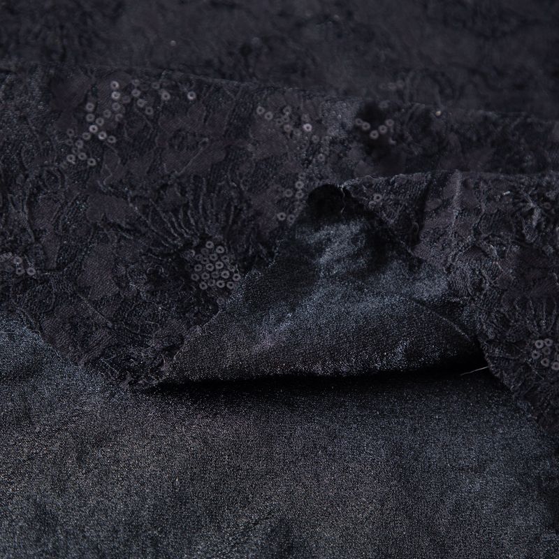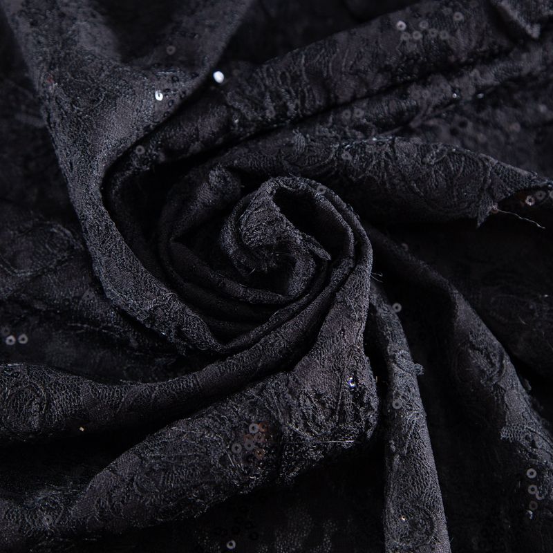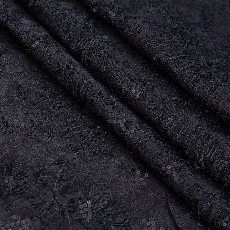 Гипюр с пайетками на вязаном трикотаже 012-20759 черный в Уфе