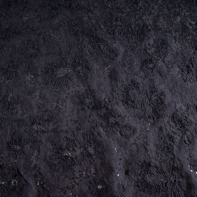 Гипюр с пайетками на вязаном трикотаже 012-20759 черный