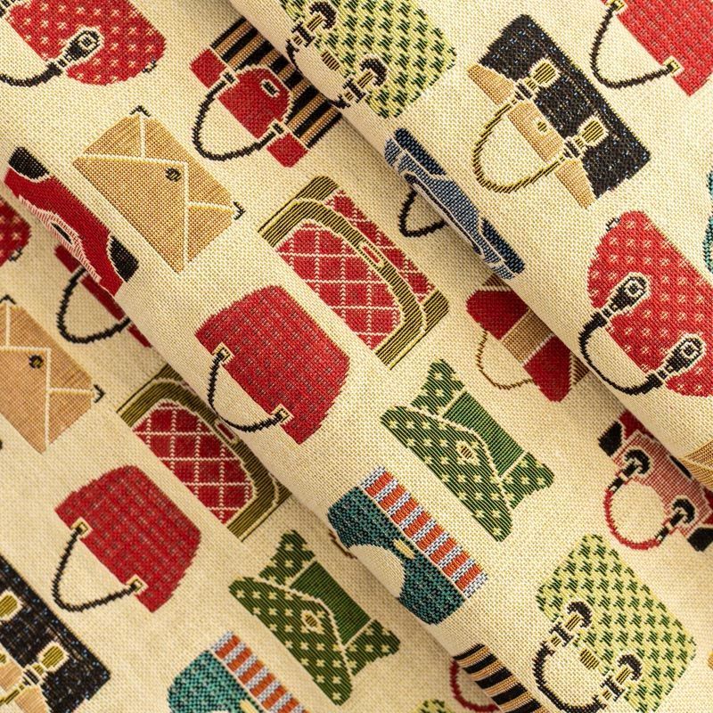 Гобелен представляет собой ткань, выполненную перекрестным плетением нитей с одномоментным созданием сюжетной или орнаментальной композиции. Это плотный материал высокую прочность и износостойкость. Гобелен используют для пошива плотных светонепроницаемых штор, декоративного домашнего текстиля и аксессуаров, в мебельном производстве для обивки мебели. Так же применяется в рукоделии: модные кошельки, сумочки, пояса и другие аксессуары и при изготовлении дизайнерской одежды. На спокойном песочном фоне цветное разнообразие милых женских сумочек, клатчей, кошелечков.
