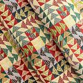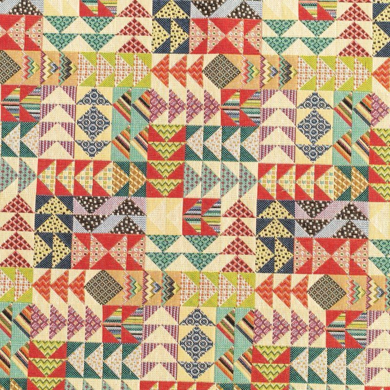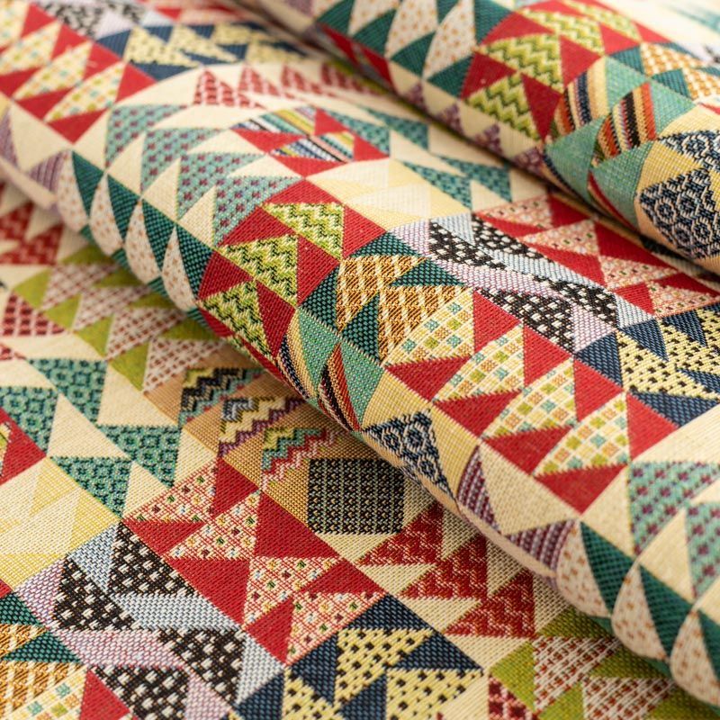 Гобелен представляет собой ткань, выполненную  перекрестным плетением нитей с одномоментным созданием сюжетной или орнаментальной композиции. Это плотный материал высокую прочность и износостойкость. Гобелен используют для пошива плотных светонепроницаемых штор, декоративного домашнего текстиля и аксессуаров, в мебельном производстве для обивки мебели. Так же применяется в рукоделии: модные кошельки, сумочки, пояса и другие аксессуары и при изготовлении дизайнерской одежды. Яркий геометрический принт с стиле печворк будет уместен во многих изделиях.