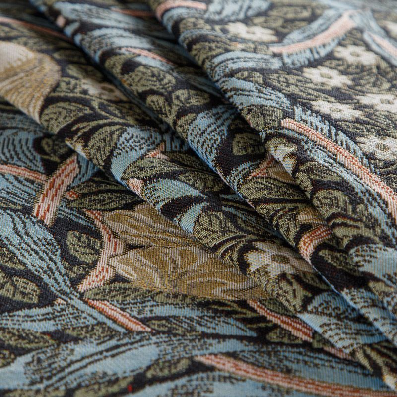Гобелен из эксклюзивной коллекции Уильяма Морриса Первоцветы - это необычный дизайн в виде закрученной восьмерки, вдохновленный одноименными обоями созданными в 1876 году, с изображением листьев и цветов тюльпана в графическом современном стиле. Тюльпан - весенний цветок красоты. Изделия с таким принтом прекрасно украсят интерьер дома. Ткань хорошо подходит для обивки мебели, изготовления домашнего текстиля, декоративных подушек, покрывал, текстильных настенных панно, абажуров, а также для пошива одежды и аксессуаров.