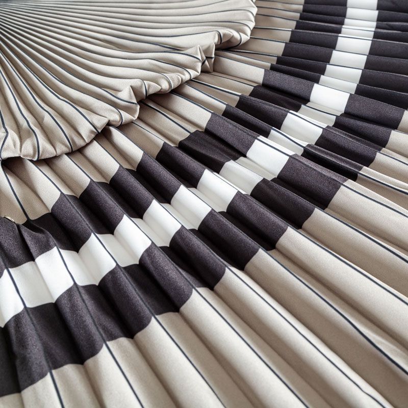 Готовый гофрированный купон из матовой креповой ткани серовато-оливкового оттенка с черно-белой полосой. Объем по низу 190 см, по талии 70 см, длина 80 см. Ткань раскроена полусолнцем, гофре заложено сверху вниз на увеличение. Ребро складки выделено черным цветом. Гофре визуально вытягивает и стройнит фигуру, именно поэтому уже который год юбки и платья гофре находятся в числе топовых вещей женского гардероба в классическом исполнении – миди и в пол, или в оригинальном ассиметричном крое. Можно использовать для клиновидной вставки в другую юбку, в спинку или рукав.
