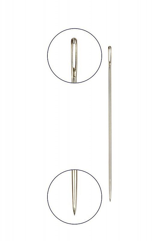 Иглы сделаны из высокоуглеродистой стали с идеальной гладкой поверхностью и никелированным покрытием, которое защищает иглу от коррозии и окисления. Ушки внутри игл отполированы и не имеют зацепок, поэтому нить не будет рваться при работе. Иглы удобны для наметки изделия. В набор входят иглы следующих размеров: №5 - диаметр 0.84 мм, длина 41 мм; №6 - диаметр 0.76 мм, длина 39.5 мм;