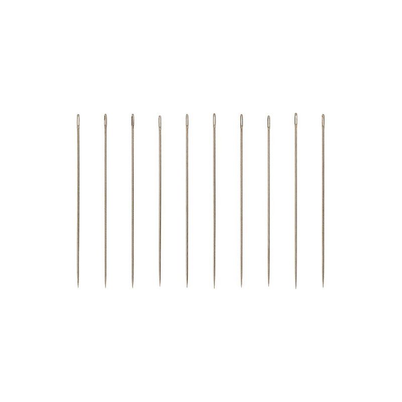 Вышивальные иглы для ручного шитья с острым кончиком и продолговатым ушком. Сделаны из высокоуглеродистой стали с идеальной гладкой поверхностью и никелированным покрытием, которое защищает иглу от коррозии и окисления. Увеличенное длинное ушко внутри иглы отполировано и не имеет зацепок, поэтому нить не будет рваться при работе. Размер иглы: 0.53 x 42.5 мм.