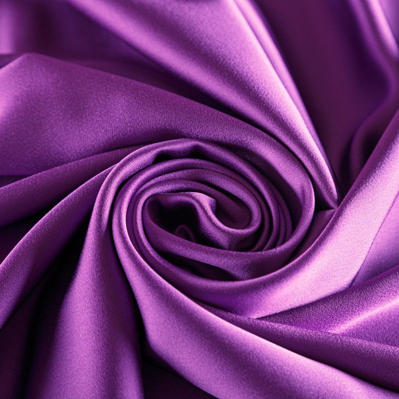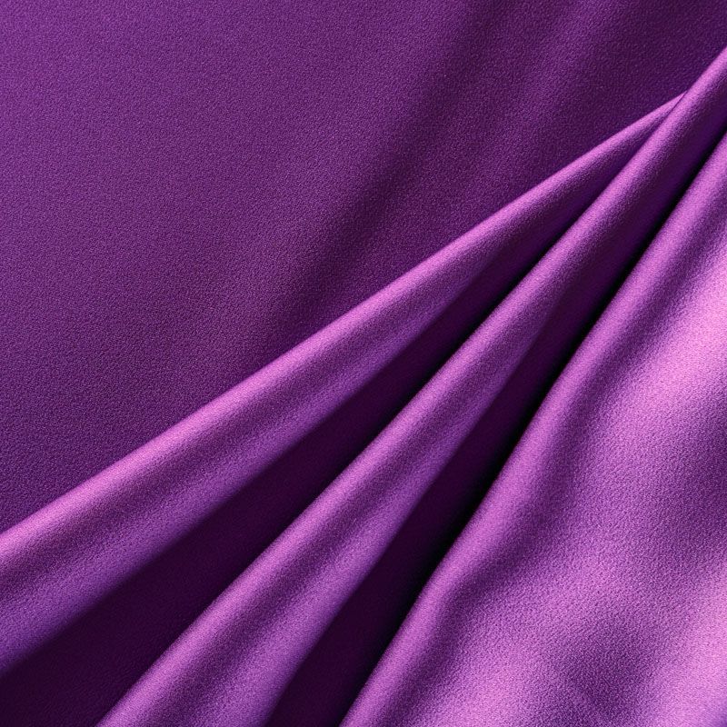Итальянская ткань кади лилового оттенка. Кади — это креп-атлас с красивым глянцевым блеском. Ткань с плотной фактурой, роскошно ниспадает, очень хорошо тянется, изумительно садится по фигуре и шикарно смотрится в изделии. Она хорошо драпируется, эффектно облегает. Подходит для пошива удлиненных платьев с драпировками, платья-футляра, брюк палаццо, юбки-карандаш, жакета, туники, кроп-топа, а также для вечерних, свадебных и  выпускных платьев и костюмов.