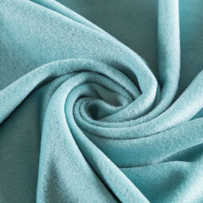Итальянский пальтовый кашемир в ментоловом оттенке. Ткань мягкая, пластичная, приятная на ощупь, гибкая, средней толщины, при этом высокой плотности. Поверхность имеет короткий ворс. Подойдет для пошива пальто, куртки, жакета, парки, кейпа, жакета или пончо.