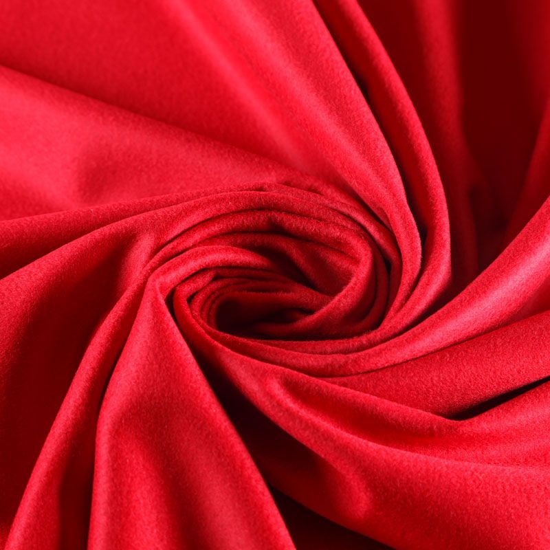 Итальянский пальтовый кашемир сочного красного оттенка. Ткань мягкая, пластичная, приятная на ощупь, гибкая, средней толщины, при этом высокой плотности. Поверхность имеет короткий ворс. Подойдет для пошива пальто, куртки, жакета, парки, кейпа, жакета или пончо.